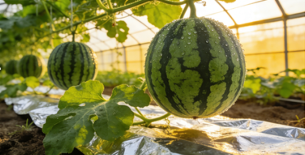 大棚西瓜现已进入最佳成熟期,瓜果个头饱满均匀,果皮花纹清晰鲜亮,色泽浓绿有光泽,表层还带着一层自然蜡粉,品相十分周正。