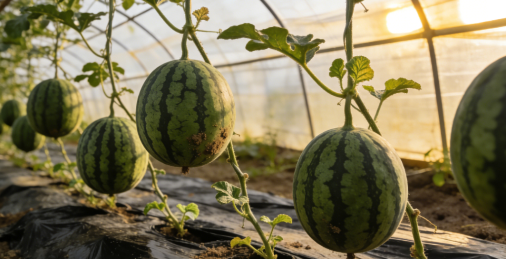 大棚西瓜苗移栽第七十九天生长情况