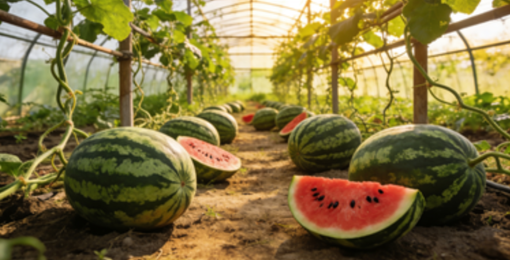 大棚西瓜苗移栽第九十二天生长情况