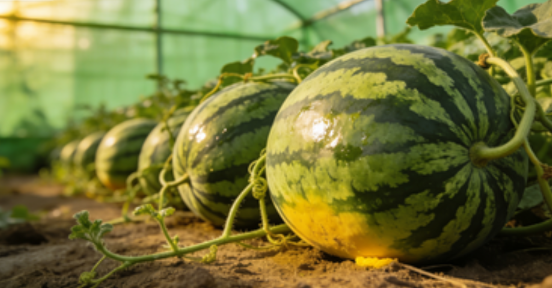 果实方面,成熟西瓜果形周正饱满,无畸形、裂纹等瑕疵,果皮色泽鲜亮、条纹清晰,表面覆盖一层细腻蜡粉,贴地部位呈淡黄色。果柄粗壮木质化,绒毛完全脱落,坐果节位前后的卷须干枯焦黄,这是成熟最明显的标志。果肉紧实脆嫩、汁水充沛,糖分积累充足,口感清甜浓郁,无空心、无白筋,品质上乘。