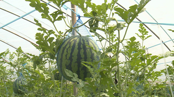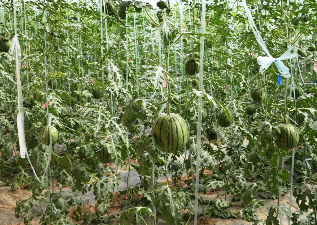 大棚西瓜苗移栽第九十六天生长情况