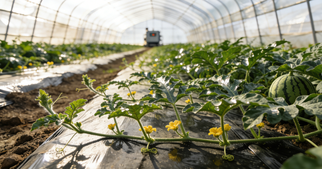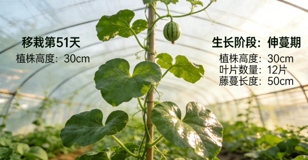 单株叶片数量可达35-45片,主要功能叶(主蔓第8-15节叶片)已完全展开,叶形呈掌状深裂,叶片厚实、质地柔韧,叶色浓绿有光泽,无发黄、焦边、卷曲等异常情况。叶片光合作用能力处于峰值,可高效合成碳水化合物,为果实膨大及糖分积累提供充足养分。
