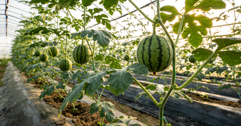 大棚西瓜苗移栽第六十一天生长情况