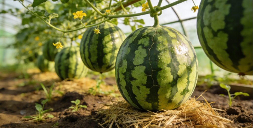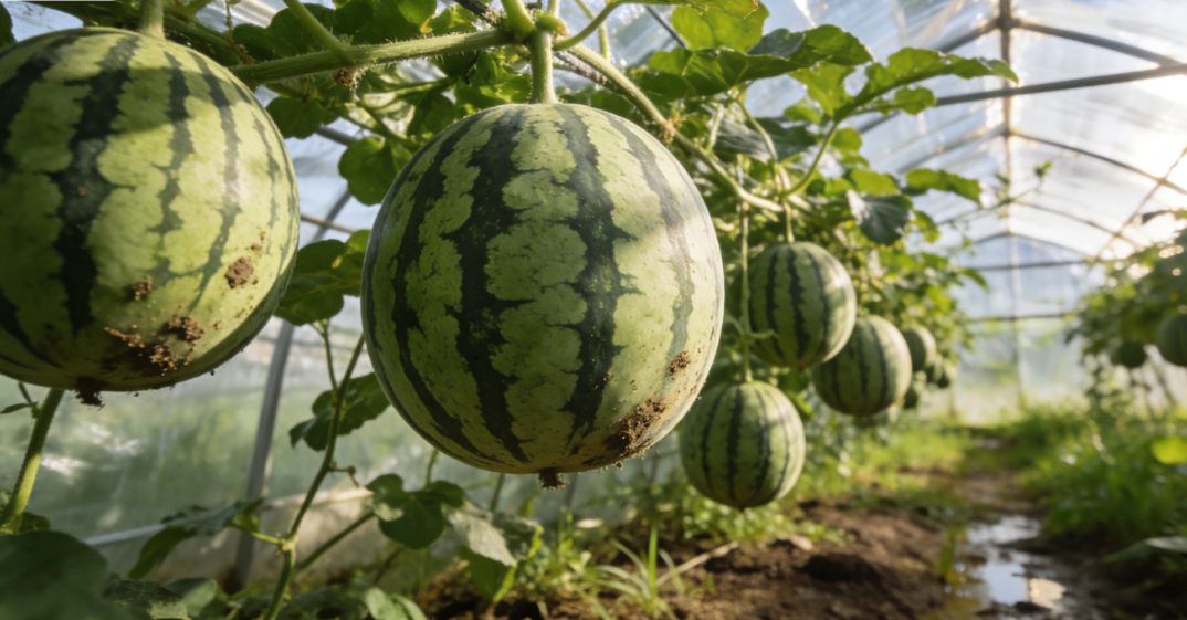 果实内部果肉色泽均匀,呈现品种固有的桃红、粉红或大红,果肉质地紧实细腻、汁水充盈,糖分积累达到峰值,中心可溶性固形物含量处于最佳区间,口感清甜脆嫩,果香浓郁,无生味、酸味,完全具备成熟西瓜的优良风味和口感。果实表面果粉均匀(部分品种),瓜柄处木质化程度高,易脱落,果脐收缩紧实、色泽发亮,拍击时发出沉闷、浑厚且有弹性的声响,这些都是果实完全成熟的典型特征,商品价值极高。
