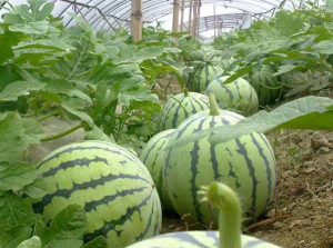 大棚西瓜苗移栽第八十五天生长情况