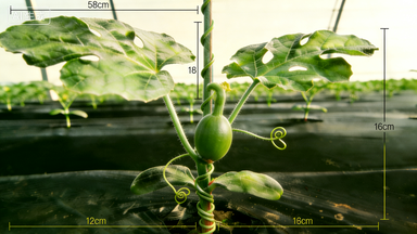 基部淡红色晕染深厚且质地坚硬,中上部茎秆柔韧有承重性,主蔓长度延伸至60-65厘米